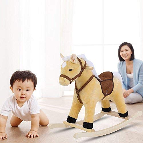 Caballito Balancín Caballo Balancín de Juguete Balancin Peluche Infantil Caballito Balancin para Bebé, con Base de Madera Maciza(Beige)